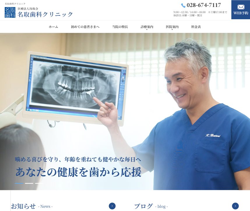 ホームページをリニューアルしました。 医院からのお知らせ2025.10.29 Facebook X LINE ホームページをリニューアルしました。 当院のお知らせや歯科に関するさまざまな情報、最新の情報等を発信させていただきます。 今後とも、何卒お願いいたします。 Facebook X LINE